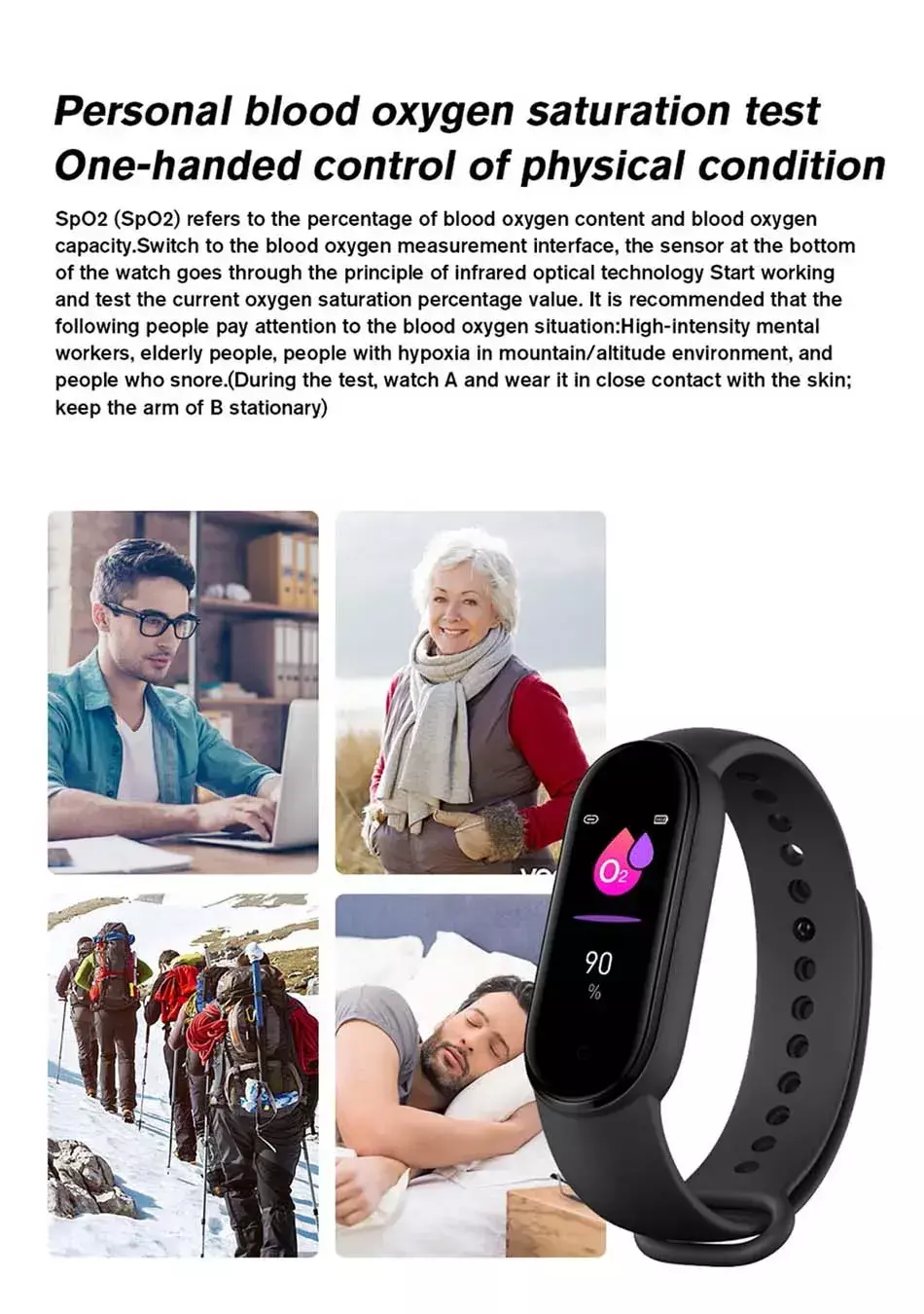 * Mais funções: Encontrar pulseira, lembrete de alarme, câmera remota, Levante a mão para iluminar, controle de música, Tempo