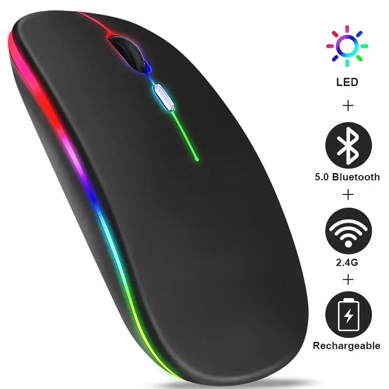 Mouse Sem Fio Bluetooth Recarregável RGB 1600 DPI – Conforto e Tecnologia na Palma da Sua Mão